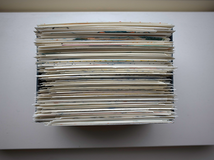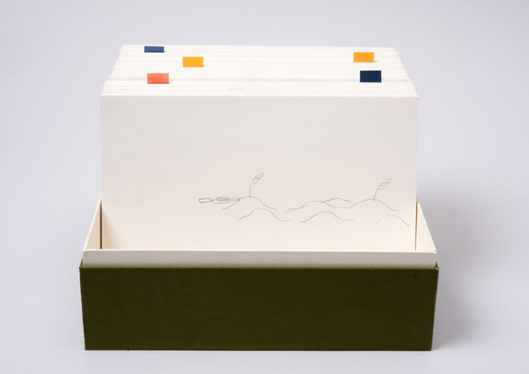 »dieses dieses« Stapel B, ca. 500 Zeichnungen, in einer Schachtel, 12,3 x 16,5 x 11,5 cm, 2016