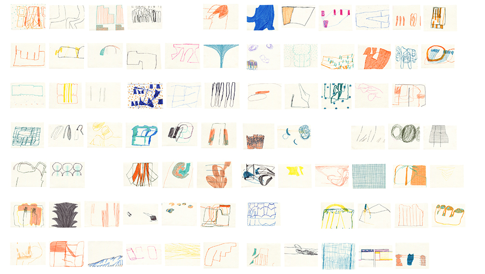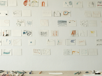 Studioaufnahme, O.T. Filzstiftzeichnung auf Papier, »dieses dieses« Stapel A, 2016